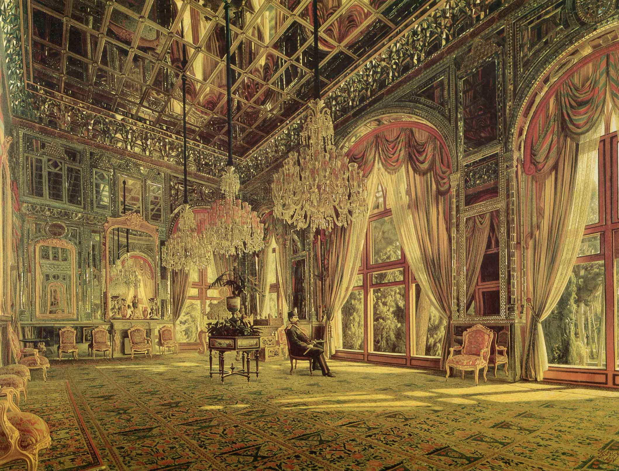 کمال‌ الملک، تالار آیینه، رنگ‌روغن روی کرباس، ۱۲۷۴ ش، ۹۹ در ۱۱۹ س. م، موزه‌ی کاخ گلستان