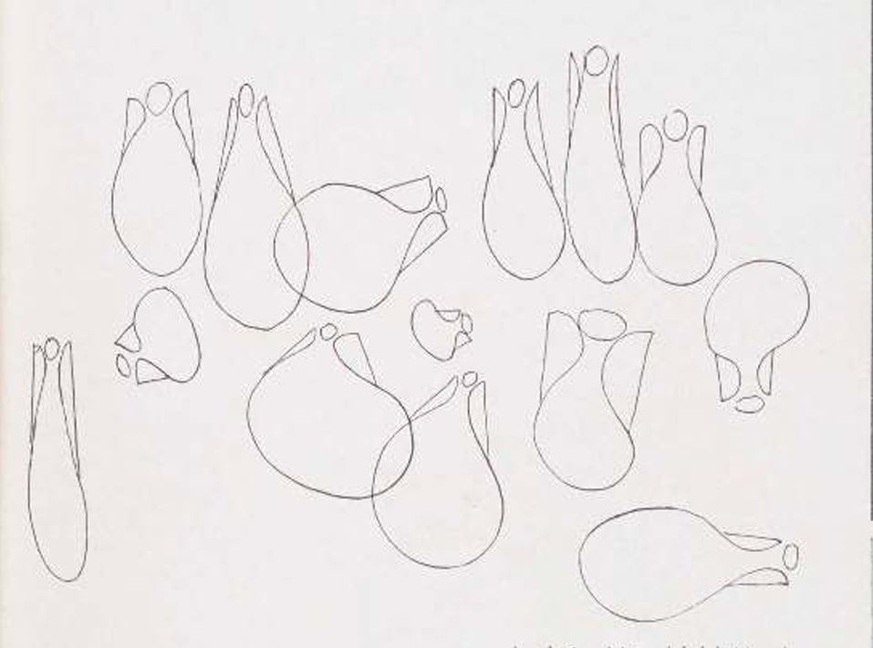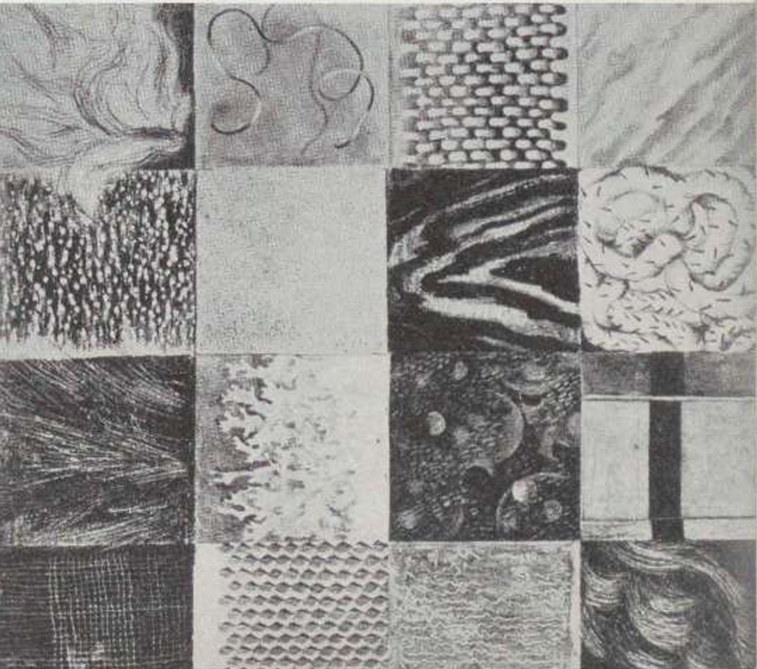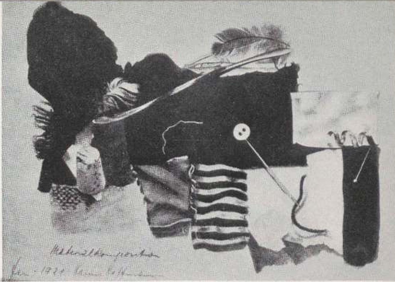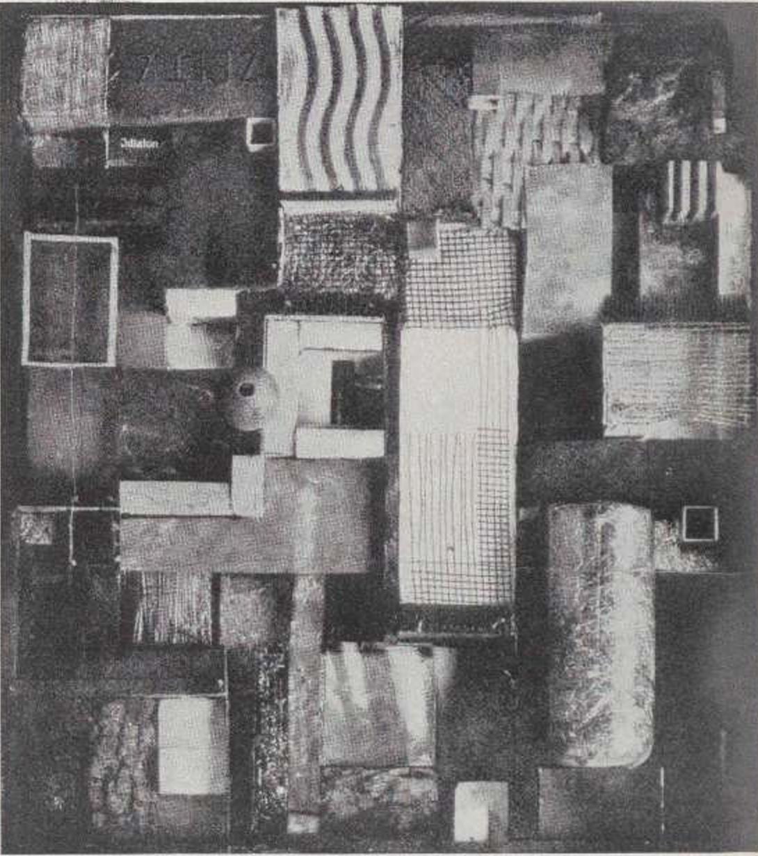ب. آزمایش با خود مواد. - مطالعات تجسمی در باب ترکیببندی، با مواد مختلف.